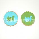 Στρογγυλά μπισκότα με ζαχαρόπαστα και ένα ζαχαρένιο καραβάκι στο κέντρο.