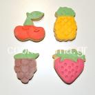 Σετ με τέσσερα μπισκοτάκια - μπουκίτσες με φρούτα του καλοκαιριού σε διάφορα χρώματα.